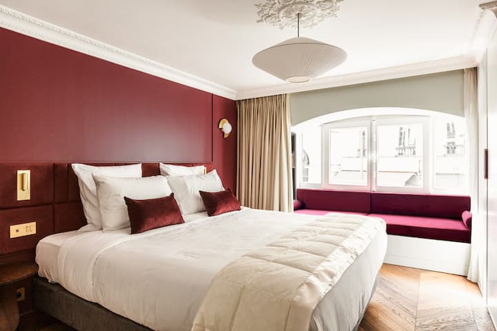 En el primer piso de un edificio del siglo XVII, en el corazón del centro histórico de París, este alojamiento amueblado de alta gama reformado con materiales nobles y totalmente climatizado consta de cuatro dormitorios con camas dobles y baños privados con capacidad para 8 personas con el más alto nivel de confort. A dos pasos del Louvre, el Palais-Royal y la Ópera Garnier, el apartamento está idealmente situado cerca de muchos restaurantes, cafeterías y tiendas.