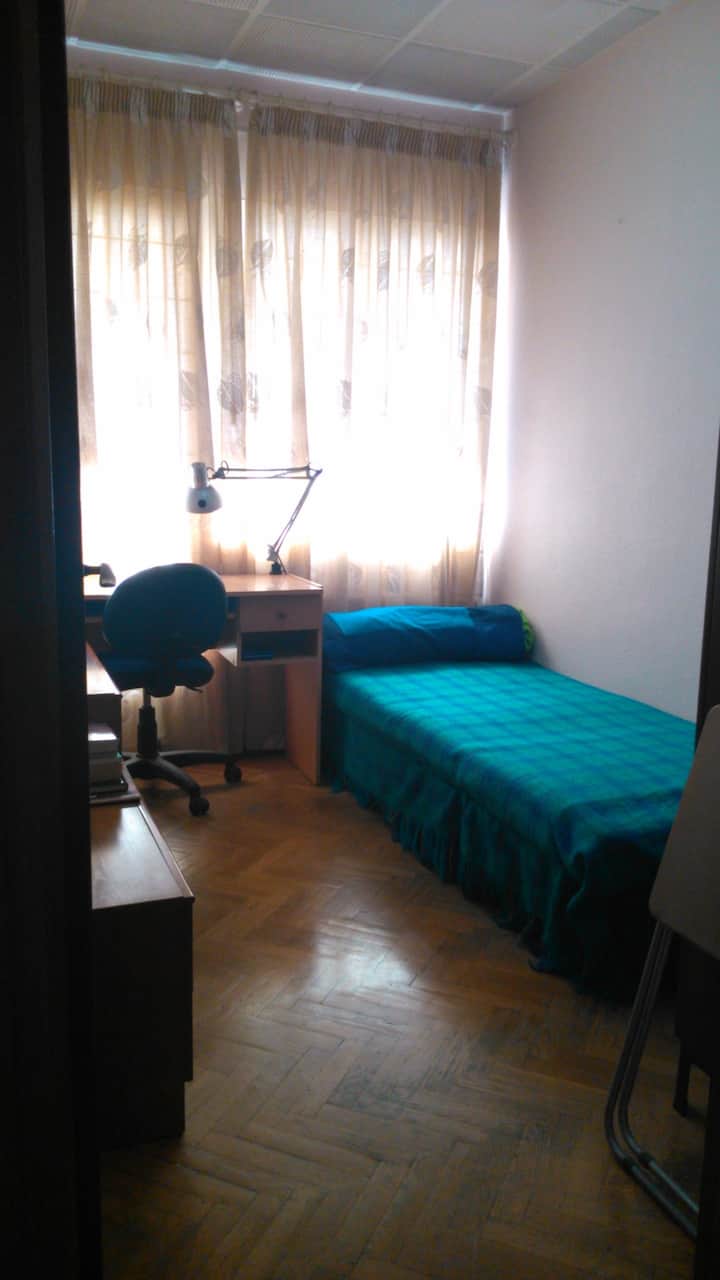 Una habitación solo para ti en un alojamiento, con acceso a áreas compartidas.