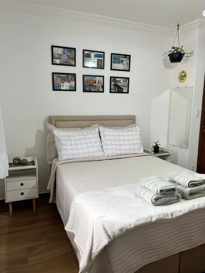Una habitación solo para ti en un alojamiento, con acceso a áreas compartidas.
