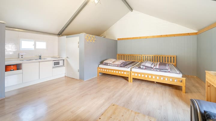 Privado + Estudio, Dormitorio (2 camas tamaño queen) + Cocina 1 + Baño 1 + Barbacoa individual