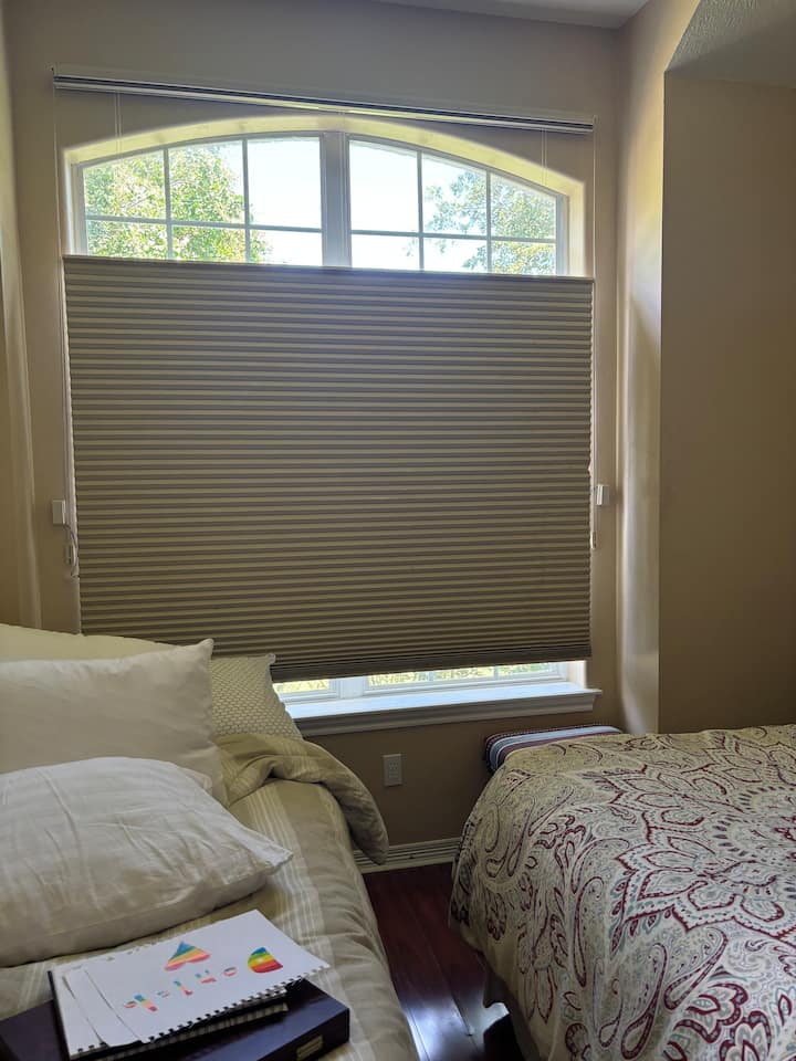 Una habitación solo para ti en un alojamiento, con acceso a áreas compartidas.