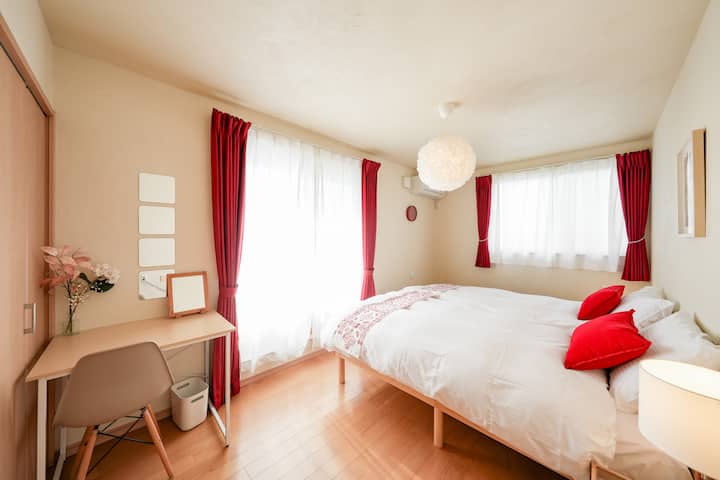 - Habitación occidental (roja)/7,5 tatami/2 huéspedes/2 camas individuales + escritorio pequeño/balcón