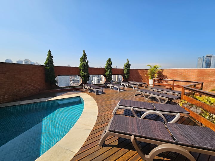 Confy en Pinheiros con gimnasio, piscina y estacionamiento
