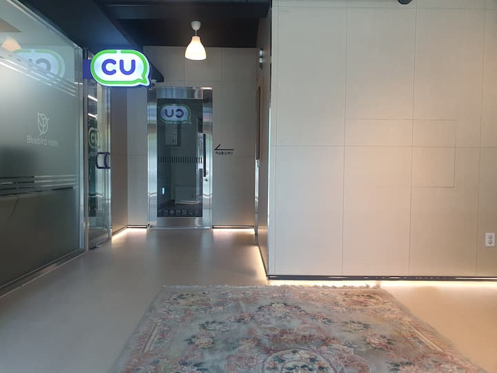 ※ Hay grandes Lotte Mart y Daiso a 5 minutos a pie, y hay una tienda de conveniencia CU en el edificio, por lo que puedes comprar las cosas que necesitas de inmediato.