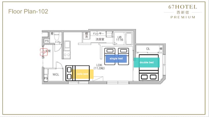 Tranquilo y cómodo, apartamento para 6 en la zona de Shinjuku