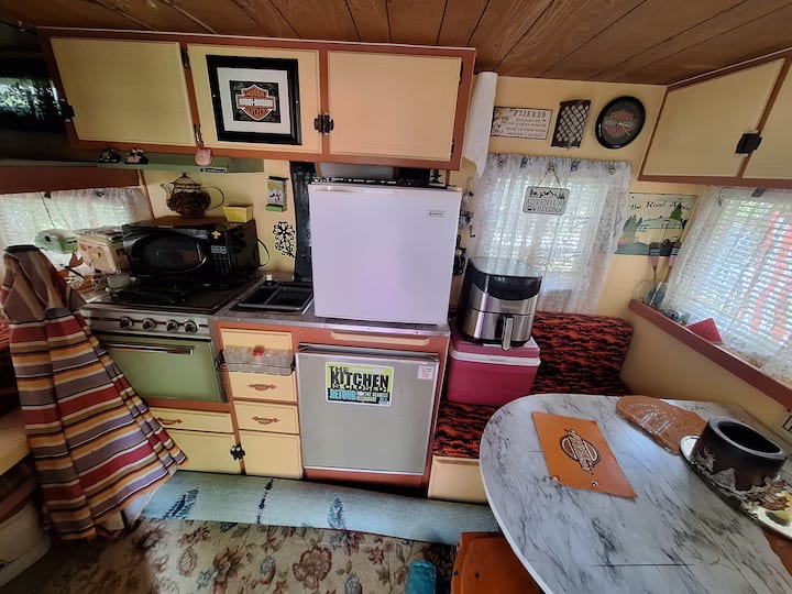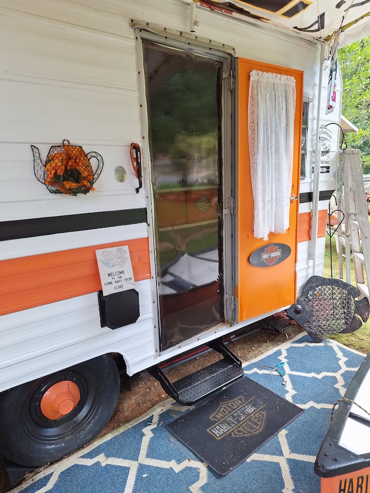 Harley Davidson en camping rústico