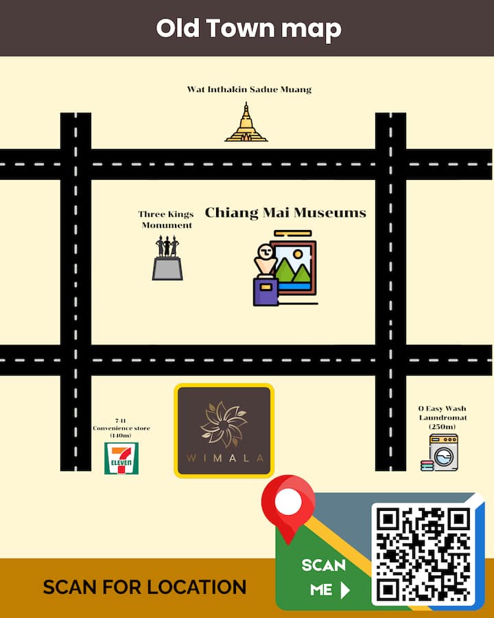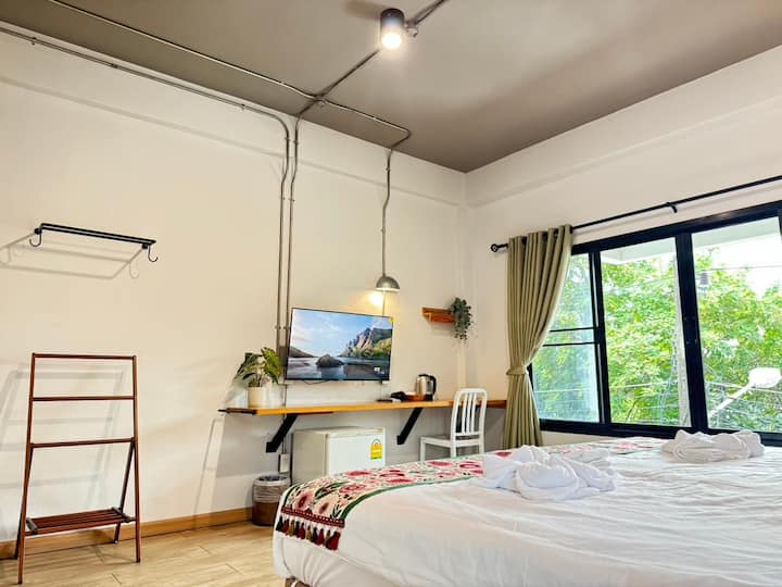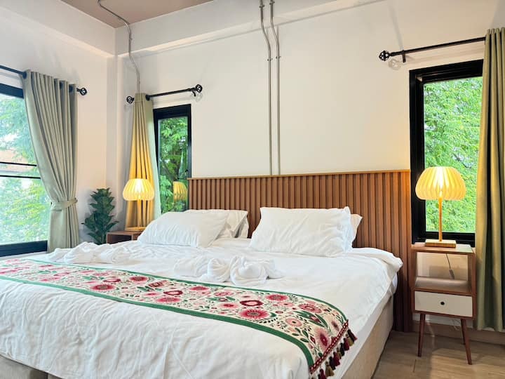 Bienvenido a nuestro elegante dormitorio, convenientemente ubicado en el corazón de Chiang Mai, justo al lado del Monumento a los Reyes Magos. Ideal para familias y viajeros con un presupuesto limitado, nuestro lugar combina la asequibilidad con la comodidad moderna. La habitación espaciosa y bien equipada cuenta con una decoración contemporánea y servicios esenciales para una estancia relajante. Disfruta de un fácil acceso a las vibrantes atracciones culturales y la comida callejera de Chiang Mai.