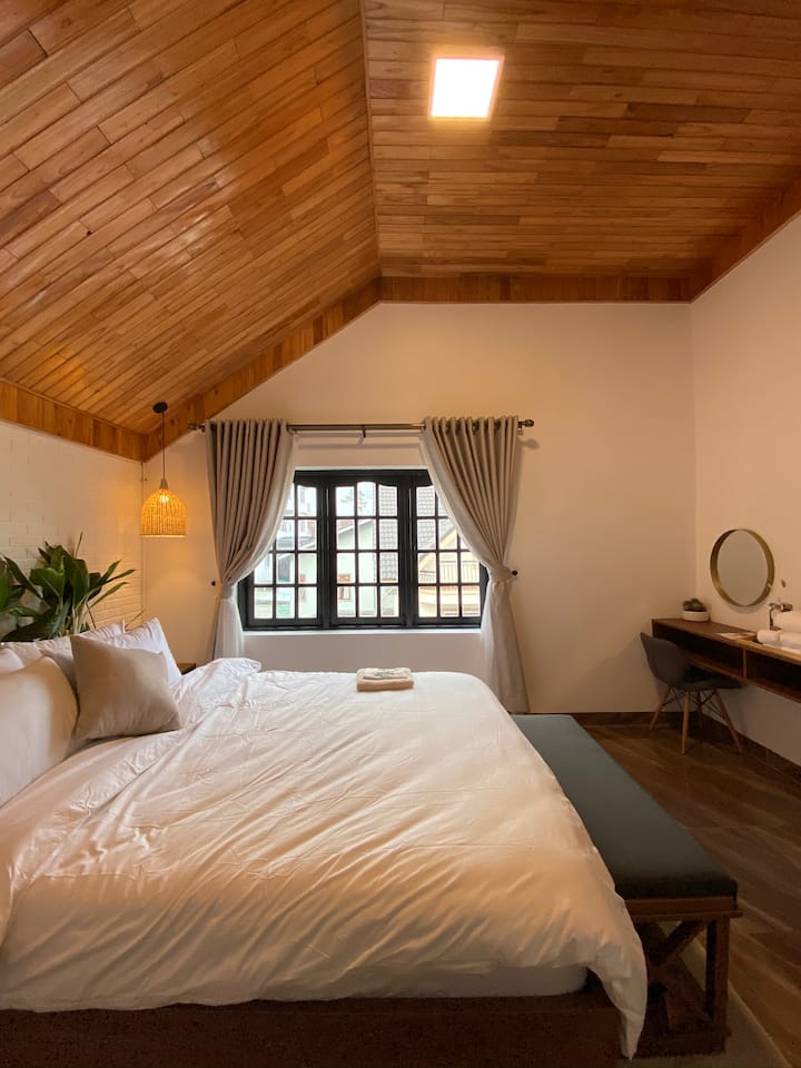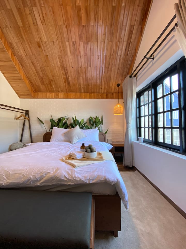 Acogedora habitación en el ático con 1 cama tamaño king para 2 personas