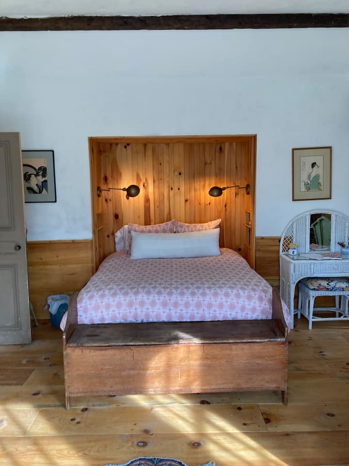 Vivo con mi esposo, Luther, y 2 hijos en una hermosa casa de 1790 parcialmente restaurada por un carpintero de Sturbridge Village hace un par de décadas. Mi esposo y yo seguimos renovando la casa y los terrenos (para siempre más). Nos mudamos aquí desde Santa Bárbara y Ventura, California, en busca de paz y tranquilidad, ¡lo encontramos! Luther utiliza el sótano y las plantas bajas del granero para su práctica de fotografía histórica.