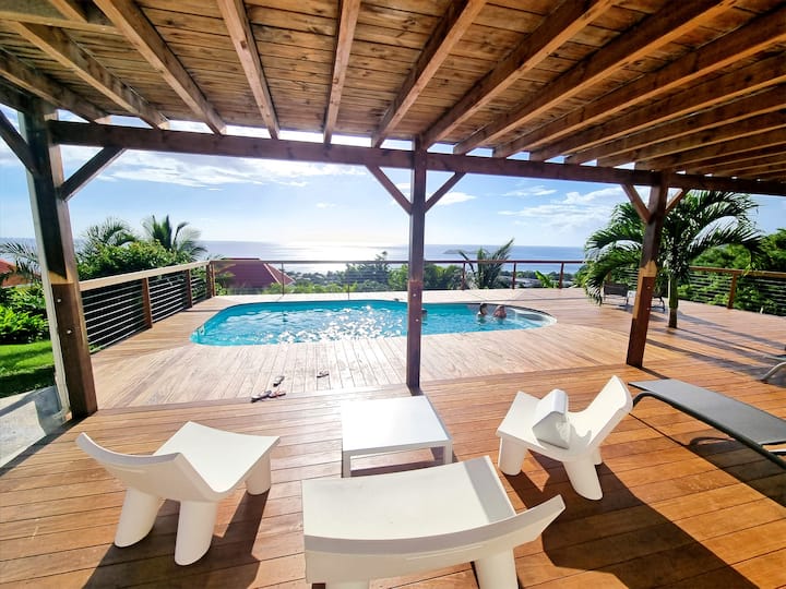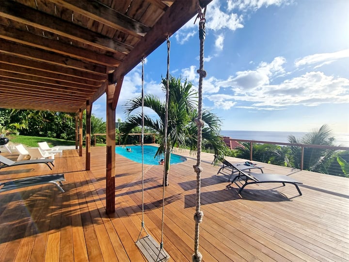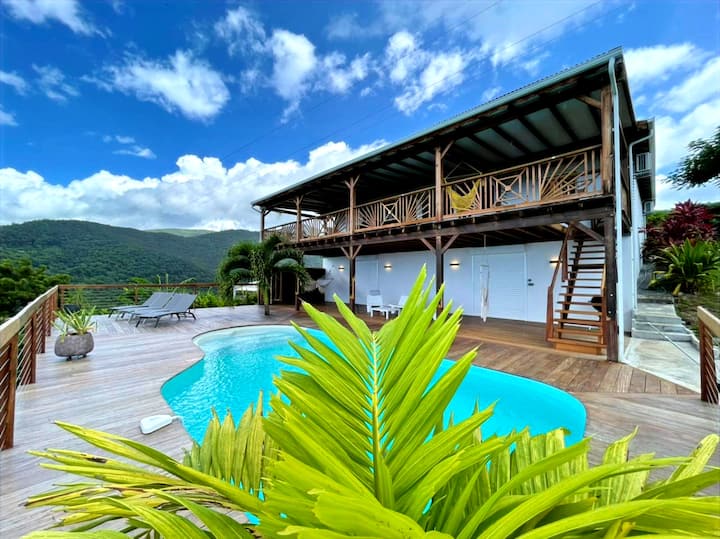 Villa Tikali con vistas al mar y a la montaña con piscina