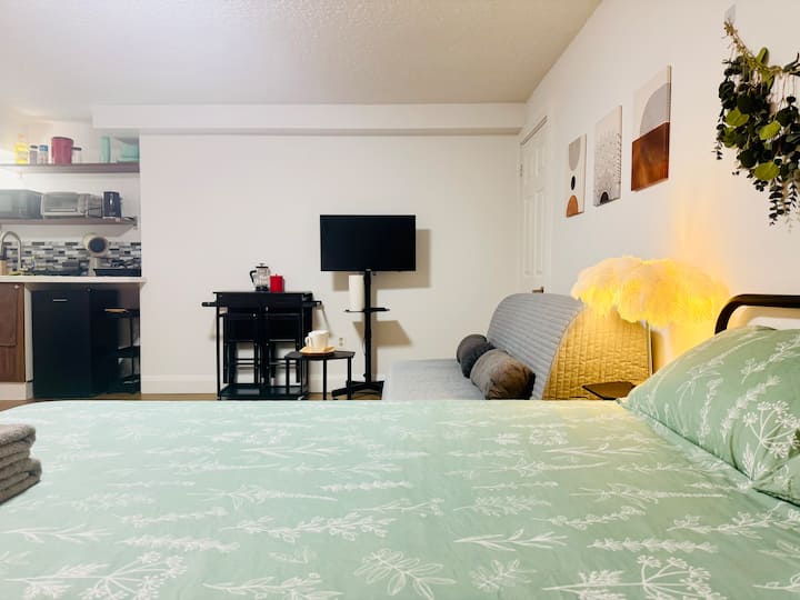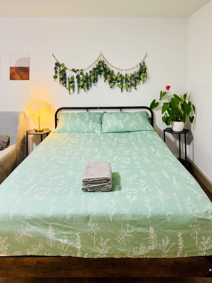 Esta es una unidad inferior de 3 dormitorios de la casa. Esta habitación es una habitación amplia y bien equipada con baño privado en el sótano. Compartirás zonas comunes con otros huéspedes de Airbnb. La habitación está cuidadosamente dispuesta para garantizar tu comodidad, con una acogedora cama tamaño queen y un sofá de tamaño completo que puede convertirse fácilmente en un sofá cama de tamaño completo, ideal para alojar hasta 3 huéspedes.