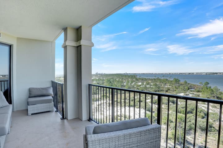 ¡Bienvenido a Florencia 505, tu escapada costera de ensueño en Perdido Key, Florida! Este lujoso condominio de 3 dormitorios y 3 baños se encuentra en el quinto piso, que ofrece vistas al agua de 270 grados desde tu balcón privado, ideal para presenciar impresionantes puestas de sol.