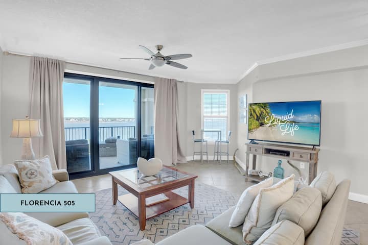 ¡Bienvenido a Florencia 505, tu escapada costera de ensueño en Perdido Key, Florida! Este lujoso condominio de 3 dormitorios y 3 baños en el quinto piso ofrece vistas al agua de 270 grados desde tu balcón privado, ideal para presenciar impresionantes puestas de sol.
