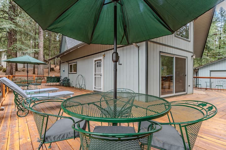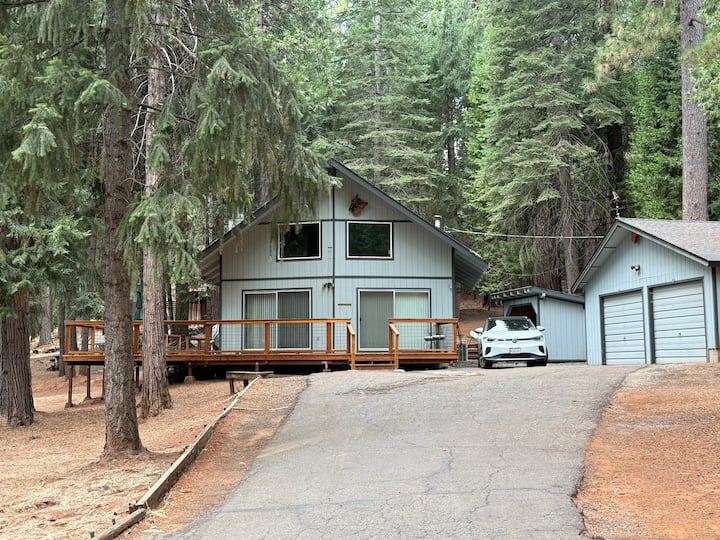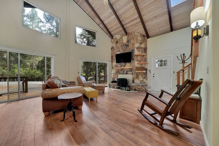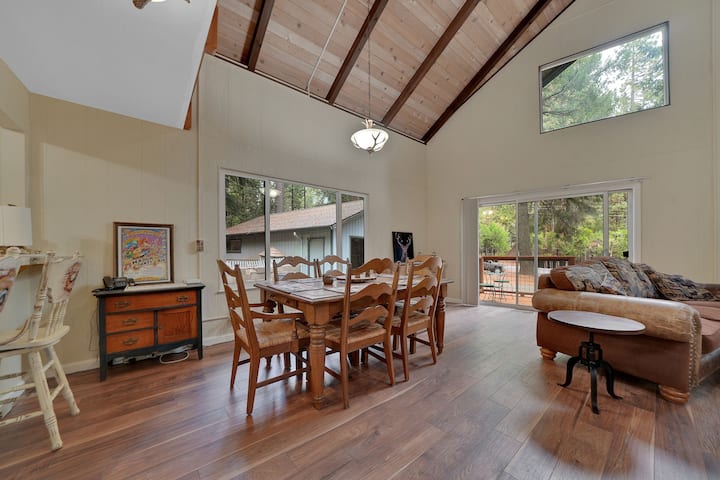 Cedar Loft, una cabaña estilo chalet en Pioneer, California, está ubicada en la pintoresca zona de Buckhorn del condado de Amador, encaramada a más de 3000 pies de altura, perfecta para aquellos que buscan una escapada acogedora a la montaña con el encanto de la nieve en invierno. La cabaña está situada en un hermoso lote rodeado de imponentes cedros y pinos, lo que se suma al ambiente tranquilo y boscoso. Tiene capacidad para alojar cómodamente hasta 10 huéspedes y cuenta con un diseño cálido y rústico con acabados de madera natural en todas partes.