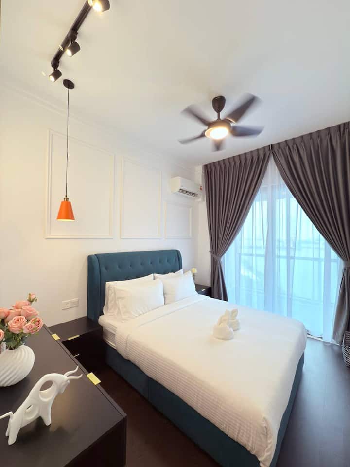 Experimenta el vibrante pulso de la vista al mar de Singapur desde nuestra casa de familia ubicada en el centro, donde puedes explorar mercados locales, lugares históricos y viajar fácilmente a JB Sentral.