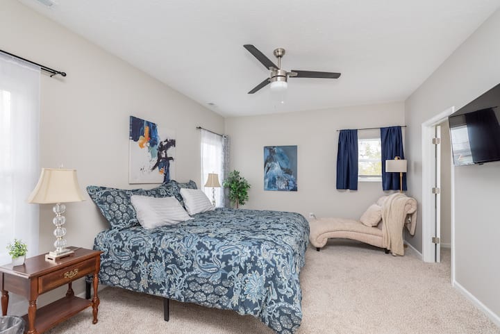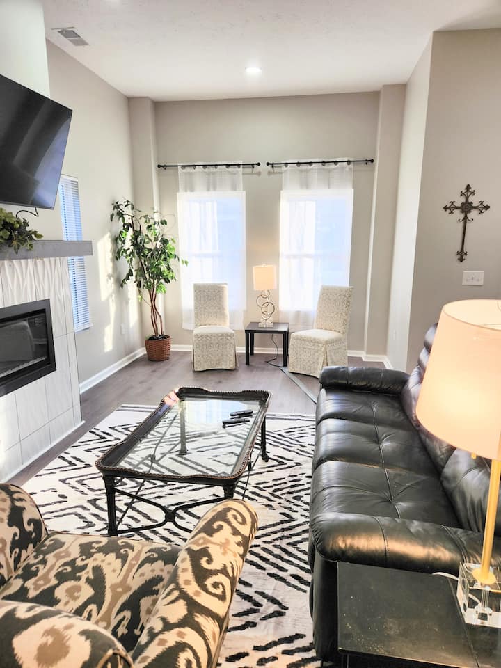 Esta lujosa nueva casa de Fountain Square es tu refugio ideal en Indy, ¡a 5 minutos del centro! Cocina gourmet con una enorme isla/bar de granito y acogedora sala de estar con chimenea, televisor inteligente de 50 pulgadas y sofá reclinable doble. ¡La lujosa suite principal cuenta con cama tamaño king, televisor inteligente de 42 pulgadas y ducha doble de 8 pies con chorros para el cuerpo! El baño 2 tiene una bañera extra profunda y un espejo de maquillaje iluminado. ¡Otros dormitorios cuentan con camas tamaño queen/ventiladores! Disfruta del patio trasero cercado y privado y del porche cubierto XLG. ¡Base perfecta para las atracciones locales!