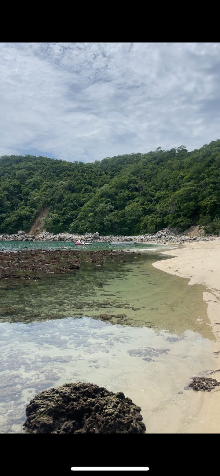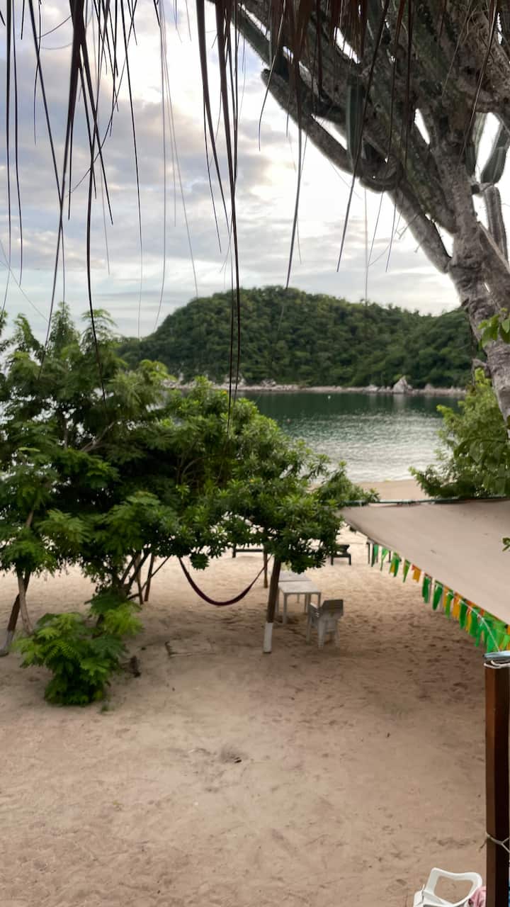 Cabaña frente al mar, playa de Riscalillo y arrecife de coral