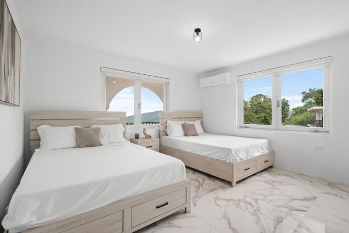 Relájate en esta amplia casa de montaña, ideal para familias numerosas o grupos. Con 4 dormitorios y 3 baños, puede alojar cómodamente hasta 10 huéspedes. Disfruta de noches de descanso en una mezcla de camas tamaño queen y dos camas individuales, lo que garantiza que todos tengan un espacio cómodo.
