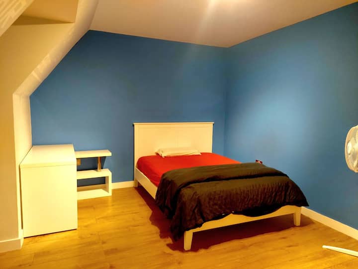Una habitación solo para ti en un alojamiento, con acceso a áreas compartidas.