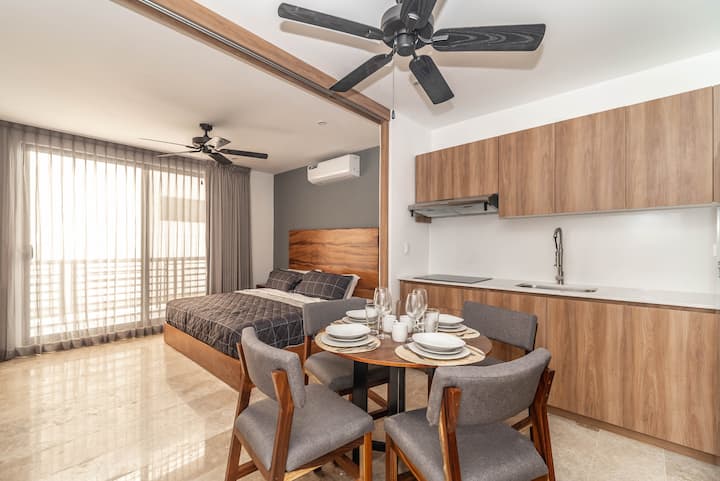 Estudio King con balcón privado, piscina en la azotea y gimnasio