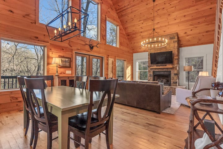 Experimenta el paraíso de la pareja definitiva en Sautee By Morning, donde la privacidad se encuentra con el encanto rústico en esta cabaña completamente actualizada. Disfruta del tranquilo aislamiento al final de la carretera sin dejar de disfrutar de las comodidades y comodidades modernas.