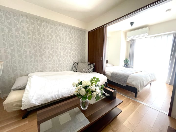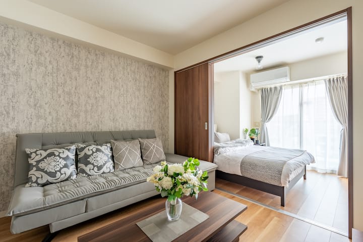 KIX en 35 minutos|Estación de 5 minutos| 3 huéspedes|4 minutos a Namba