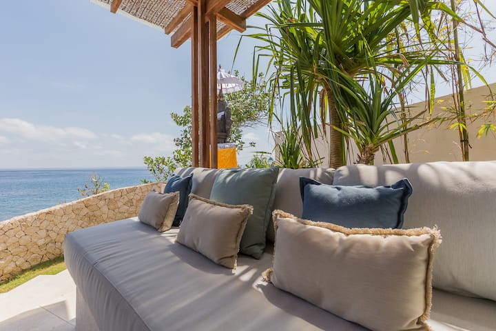 Ofrece vistas espectaculares del mar de Bali con los majestuosos volcanes de Bali y la costa como telón de fondo único.