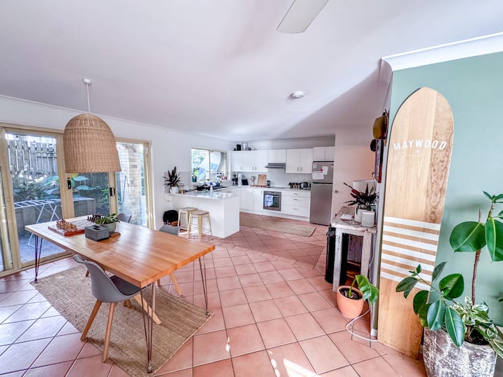 Soy escritor y director y nuestra casa es grande y relajada y a tiro de piedra de Dolphins Beach.