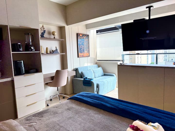 Este apartamento ubicado en el barrio de Indianópolis ofrece toda la comodidad y practicidad para una estancia impecable. Con capacidad para alojar a tres personas, la propiedad tiene una espaciosa cama tamaño queen, lo que garantiza noches de descanso perfectas. La cocina está equipada con todos los utensilios domésticos necesarios para preparar tus comidas con facilidad. Además, el ambiente es acogedor y está bien decorado, creando un ambiente relajante y acogedor. La maravillosa vista, que se puede disfrutar desde varios puntos del apartamento, es uno de los aspectos más destacados, proporcionando un toque especial a la experiencia. Una ubicación ideal para aquellos que buscan comodidad, practicidad y tranquilidad en uno de los vecindarios más encantadores de São Paulo.