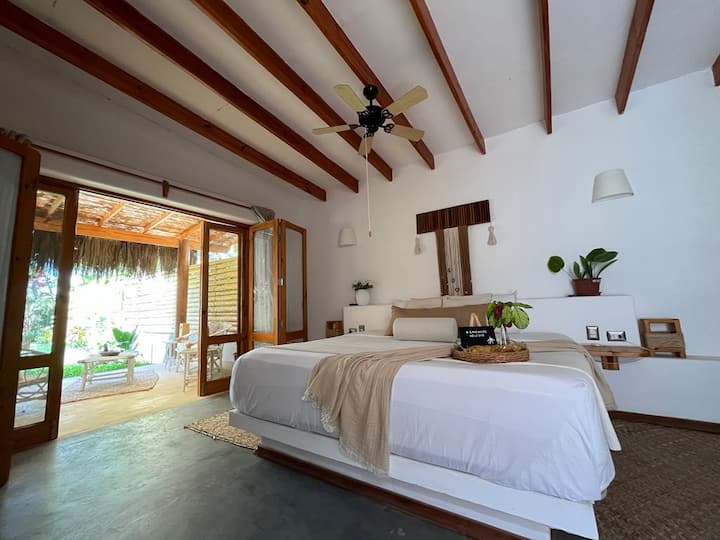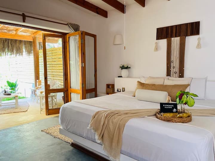 La suite WюYRA se encuentra en Villa Escondida, una villa boutique única de bed and breakfast ubicada en el corazón de Las Pocitas en Mancora, Perú.