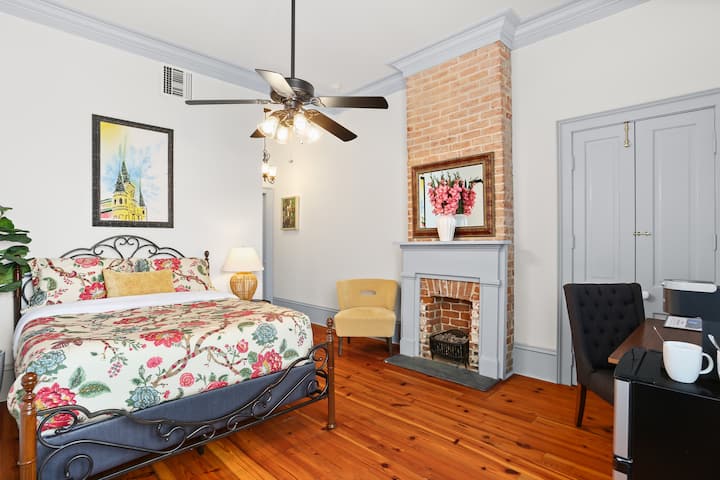 Ubicada en el corazón de la histórica Marigny, esta impresionante habitación privada ofrece encanto, comodidad y comodidad moderna. Ubicada en un bed and breakfast histórico bellamente mantenido, esta habitación cuenta con su propio baño privado, una acogedora cama tamaño queen con lujosas sábanas y una decoración elegante que destaca el carácter atemporal del edificio. Los huéspedes disfrutarán de servicios como una mininevera, cafetera, escritorio, TV de pantalla plana y amplias sábanas limpias para una estadía cómoda. Ten en cuenta que, aunque ya no operamos como bed and breakfast tradicional, este espacio ofrece un refugio sereno en medio de la animada cultura de Nueva Orleans.