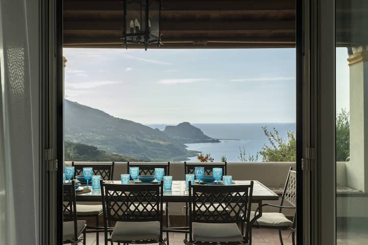 Il Basto La villa recientemente renovada está frente al mar con terrazas suaves para relajarse y cenar, interiores cómodos y vistas panorámicas. Situado en una ladera verde sobre la playa y a poca distancia en coche del pequeño pueblo de Sant Ambrogio y la ciudad de Cefalú, los huéspedes pueden disfrutar del entorno tranquilo con la opción de sumergirse en la vida del pueblo siciliano. Las emocionantes excursiones de un día incluyen visitar las ruinas romanas de Tindari, explorar los senderos para caminar en las montañas de Madonie y excursiones en barco a las Islas Eolias.