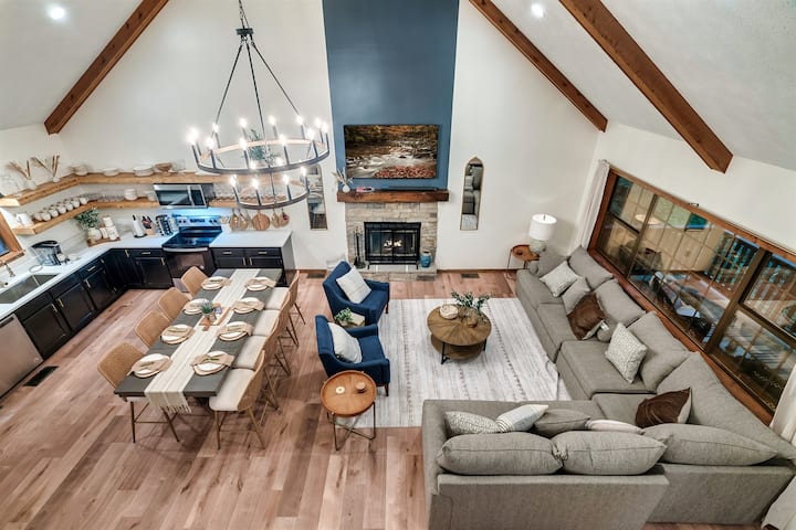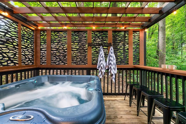 Escápate "Into the Woods", una cabaña serena en el Chalet Village de Gatlinburg, a pocos minutos de las Montañas Humeantes y del centro de la ciudad. Disfruta de una amplia sala de estar, sala de juegos con sala de juegos, mesa de billar/hockey de aire/ping-pong y sala de teatro con pantalla de 84 pulgadas. Relájate en las terrazas o en el jacuzzi. Accede a los servicios de Chalet Village, que incluyen 3 piscinas y canchas de tenis. La cabaña tiene capacidad para 12 personas en 4 dormitorios más sofá cama, con 3 baños completos. Cerca de atracciones como Anakeesta/Dollywood. ¡Perfecto para tu escapada familiar!