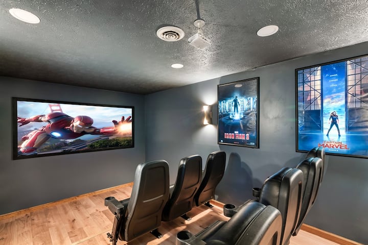 Sala de → cine con pantalla de 84pulgadas y 13 asientos de teatro
