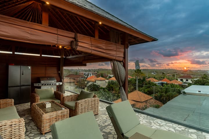 Vistas panorámicas de 360 grados, incluido el icónico Parque Cultural Garuda Wisnu Kencana (GWKCP), visible desde la villa