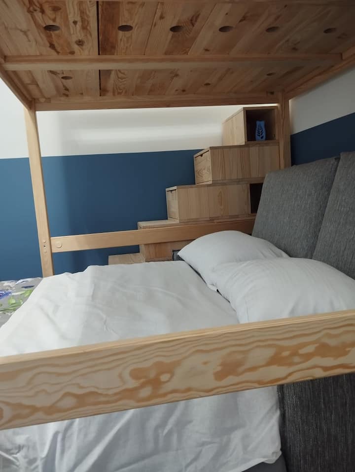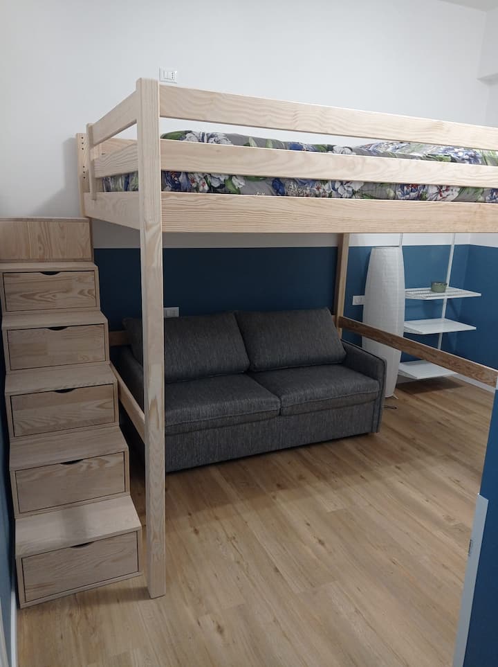 habitación doble con baño y sofá cama