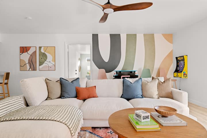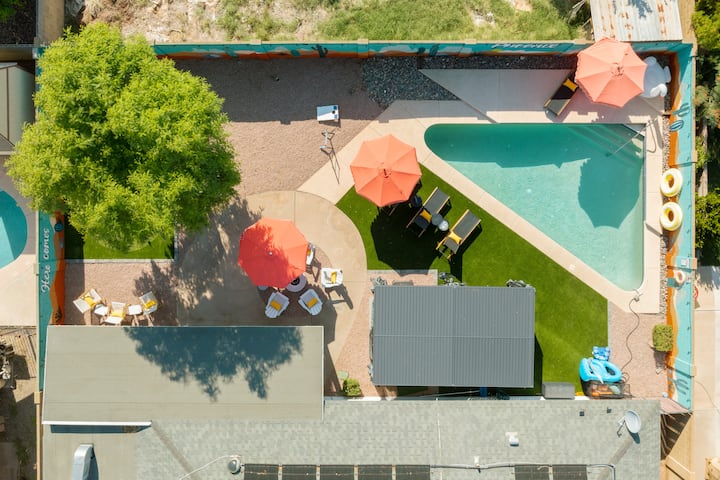 Amplio refugio de 5 dormitorios y 3 baños hecho para familias, grupos y celebraciones. Relájate junto a la fogata, sumérgete en el jacuzzi o desafía a tus amigos en el arcade retro: tu escapada a Phoenix comienza aquí.