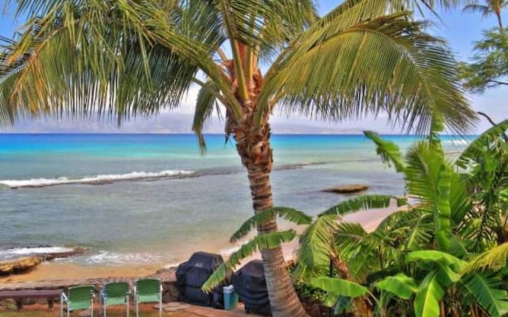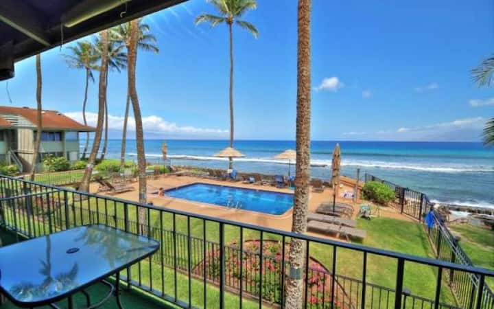 Apartamento 2Bd/2ba frente al océano/playa con impresionantes vistas al mar de Molokai y Lanai. Relájate junto a la piscina frente al mar y observa a las tortugas y ballenas nadar o camina por las escaleras para darte un chapuzón en el océano para practicar esnórquel. Junto a Honokowai Beach Park, Ka'anapali, Kahana, Lahaina y Napili. Con una ubicación céntrica y accesible a pie a tiendas de regalos y restaurantes locales favoritos.
