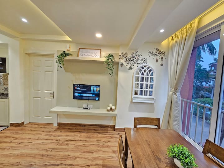 Disfruta de una experiencia verdaderamente elegante en estos dos apartamentos 1BHK impecablemente ubicados, convenientemente situados uno al lado del otro. Reserva ambos apartamentos juntos para una experiencia perfecta, ofreciendo suficiente espacio para todos mientras se mantiene la privacidad individual. Ya sea que estés aquí para explorar la enérgica cultura de Goa o relajarte en paz, esta combinación de dos apartamentos 1BHK ofrece el equilibrio perfecto de comodidad y confort para tu escapada.