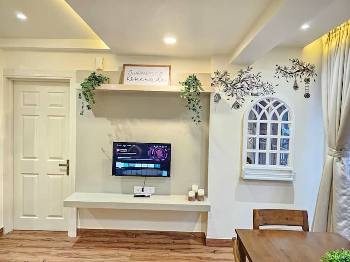 En la sala de estar encontrarás una televisión preinstalada con aplicaciones de transmisión populares como Netflix, YouTube, Prime Video y Hotstar, lo que garantiza que te mantengas entretenido durante tu tiempo de inactividad. Mantente conectado con nuestra conexión wifi fiable.