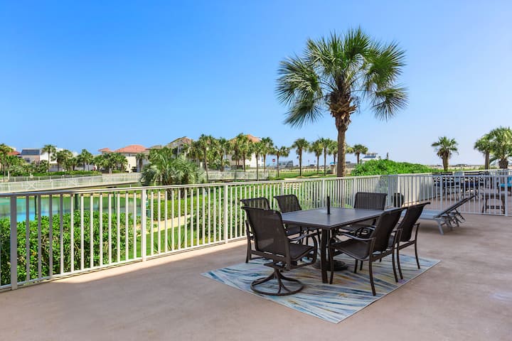 Amalfi Coast Resort abarca más de ocho acres exuberantemente ajardinados y ofrece servicios excepcionales, que incluyen dos grandes piscinas estilo laguna (una climatizada según la temporada), canchas de tenis iluminadas, un gimnasio, un aro de baloncesto y un puente peatonal sobre la laguna que conduce a un acceso a la playa. Las áreas de pícnic, las estaciones de parrilla y un práctico pabellón de baños junto a la caminata por las dunas garantizan que estés totalmente equipado para relajarte días de playa y divertidas comidas familiares.