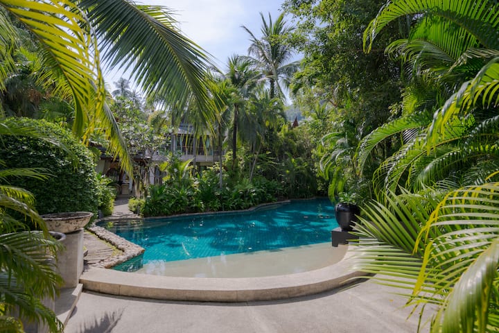 Villa Suriyana de lujo con piscina y 3 dormitorios, a pie de la playa de Surin