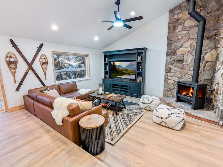 Diseño familiar: diseñado profesionalmente pensando en las familias, nuestra casa de 3000 pies cuadrados tiene espacios para vivir en los tres niveles que crean un entorno familiar donde todos los miembros de tu equipo pueden relajarse y descansar juntos. Nos encargamos de los detalles para que puedas concentrarte en disfrutar de tus épicas vacaciones en Alaska.