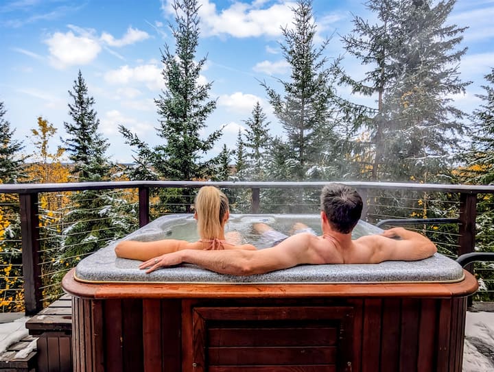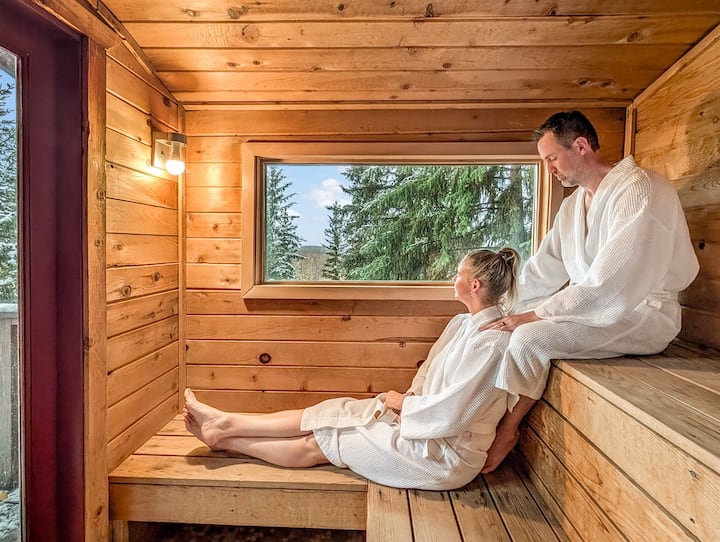 Impresionantes vistas a la montaña: despierta con impresionantes vistas panorámicas de las montañas y los bosques de pinos desde tus ventanas o la gran terraza. Los colores cambiantes del cielo al amanecer y al atardecer seguramente te dejarán asombrado. Relájate y rejuvenece con un baño en el jacuzzi o una sesión relajante en la sauna; ambos ubicados en la terraza, justo al lado de la cocina.
