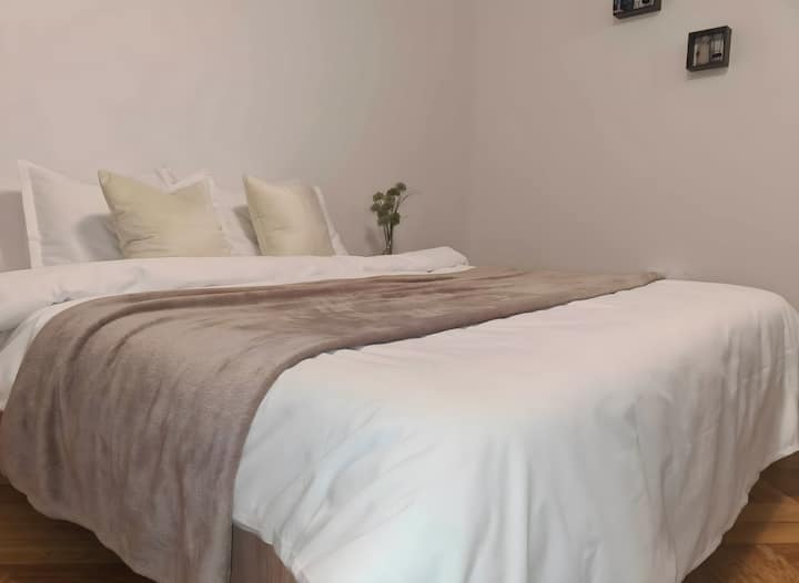 Nuestro departamento tiene dos habitaciones acogedoras y un baño, por lo que es ideal para familias, amigos o parejas que buscan una escapada cómoda y relajada. Te sentirás como en casa con una cocina totalmente equipada (horno, microondas, cafetera), perfecta para cocinar una deliciosa comida después de un día ajetreado. También ofrecemos fruta, chocolates y galletas de cortesía a la llegada, ¡porque creemos que los pequeños detalles marcan una gran diferencia!