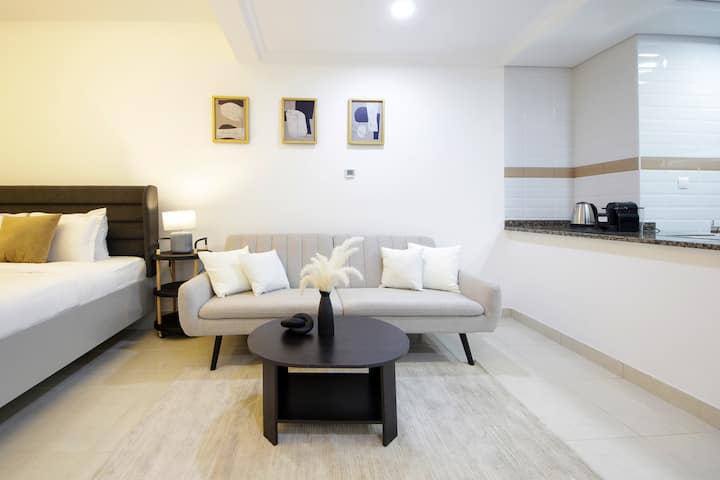 Diseñado para la vida urbana moderna, este estudio totalmente amueblado en The Court Tower en Business Bay de Dubai ofrece una estancia cómoda para negocios o vacaciones. Ideal para personas o parejas, el espacio de diseño abierto incluye una cama tamaño king, sala de estar y comedor, televisor inteligente y una cocina abierta bien equipada. Las grandes ventanas permiten que la luz natural fluya a través de los interiores, creando una atmósfera fácil y equilibrada. El departamento está cuidadosamente organizado para admitir estancias cortas y largas.