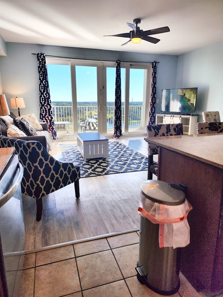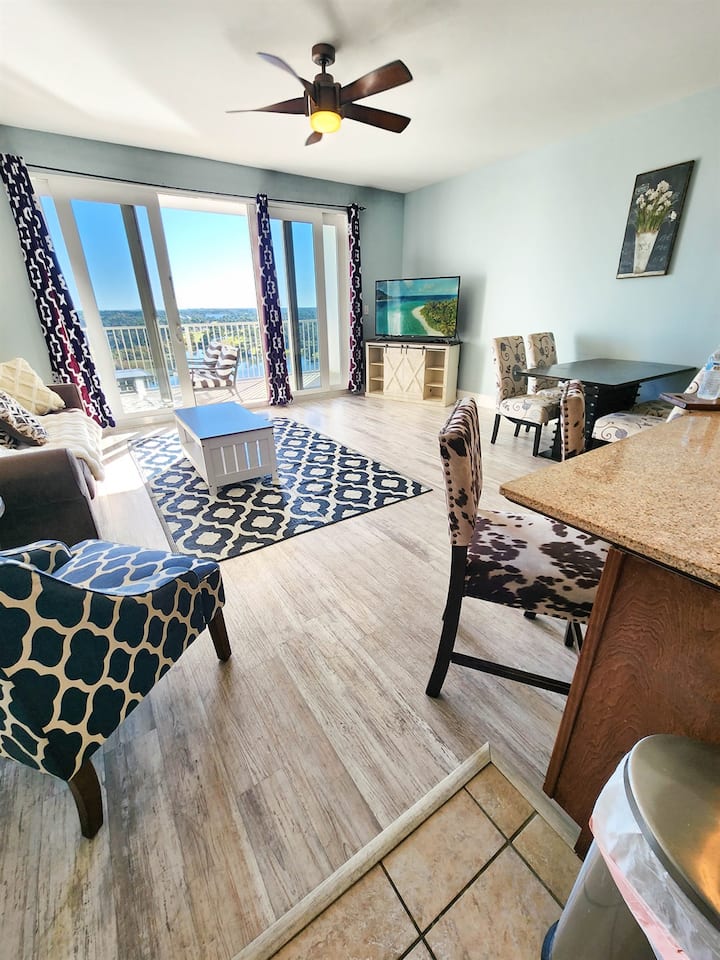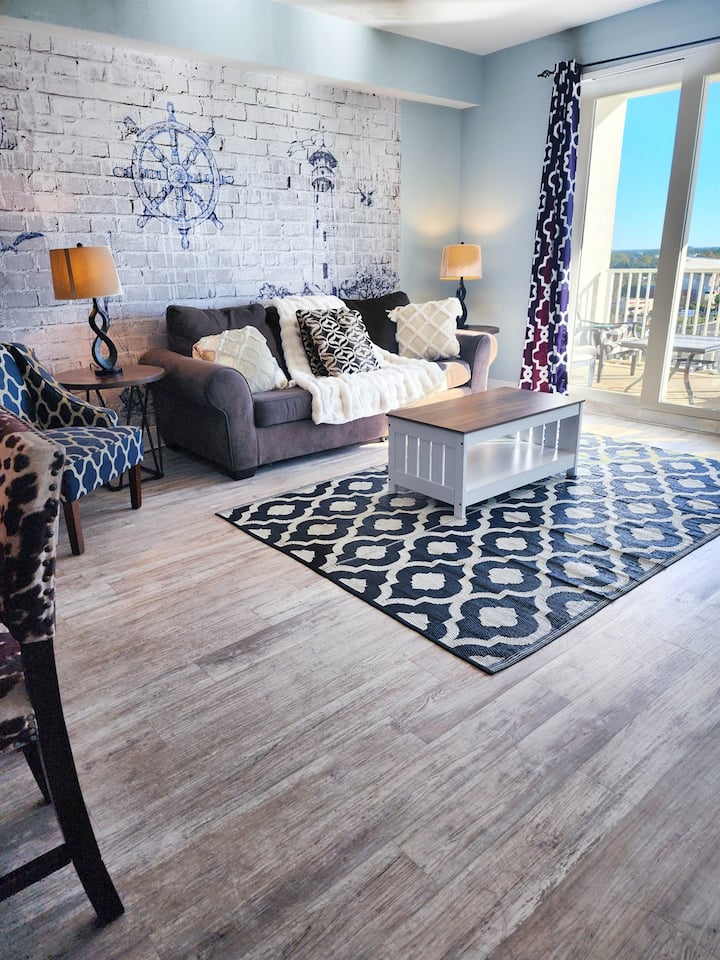 Apartamento completamente remodelado y bellamente amueblado, ubicado a poca distancia a pie de la playa. Lake Town Wharf ofrece LAS vacaciones en estilo Resort, desde las cinco piscinas únicas, 52,000 pies cuadrados de paseo marítimo frente al lago, un gimnasio totalmente equipado, estacionamiento cubierto, golf en miniatura, un mercado/bistró en el lugar, opciones gastronómicas en el lugar y espacios de reunión flexibles para conferencias, bodas y otras funciones grupales. Realmente no hay ninguna razón para irse, aparte de la experiencia de playa que puedes encontrar al otro lado de la calle.