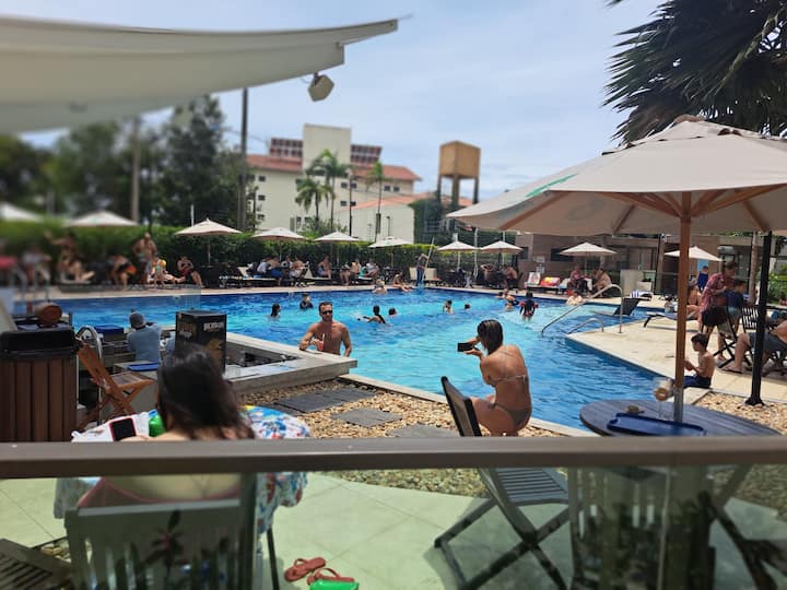 Este es uno de los pocos lugares en la zona con una alberca.