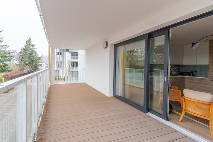 - Renta de alojamientos vacacionales con área de asientos al aire libre en Pomerania Occidental