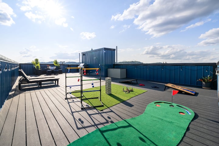 - Las terrazas en la azotea con parrillas para barbacoa ofrecen el espacio perfecto para relajarse y disfrutar de las vistas de la ciudad.